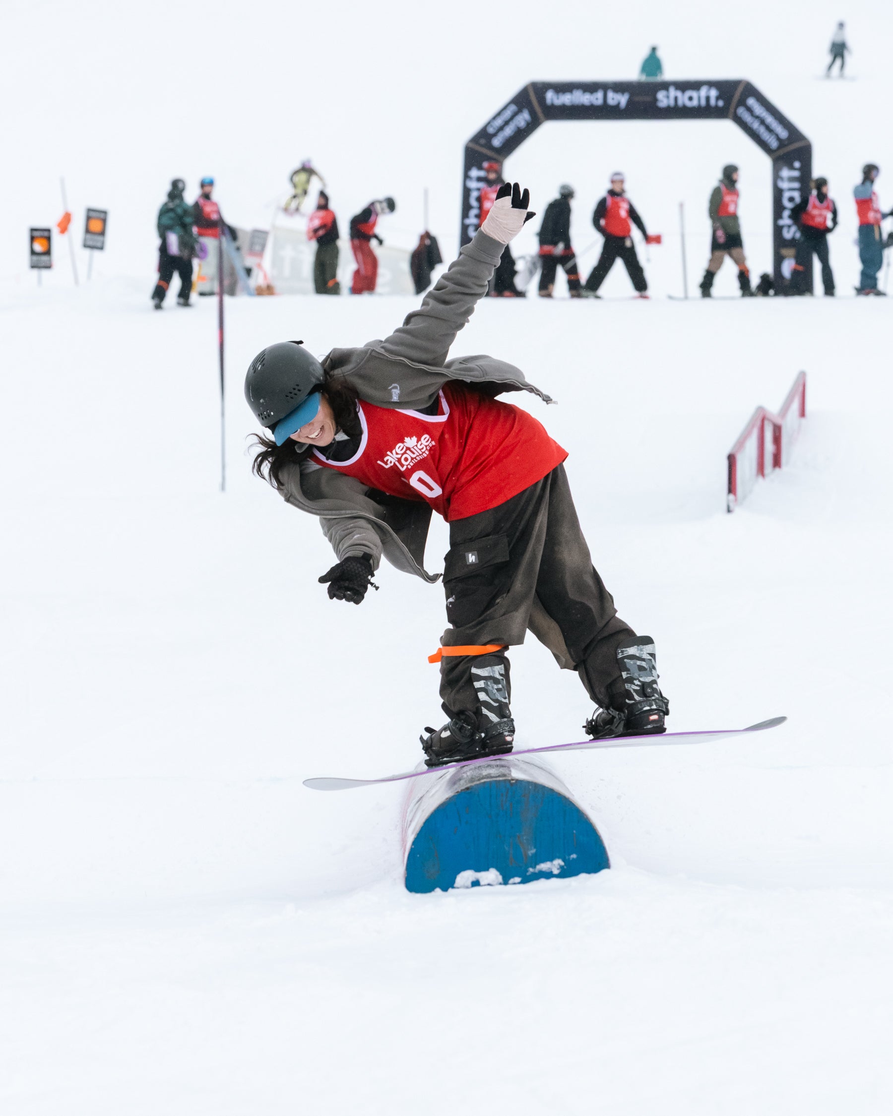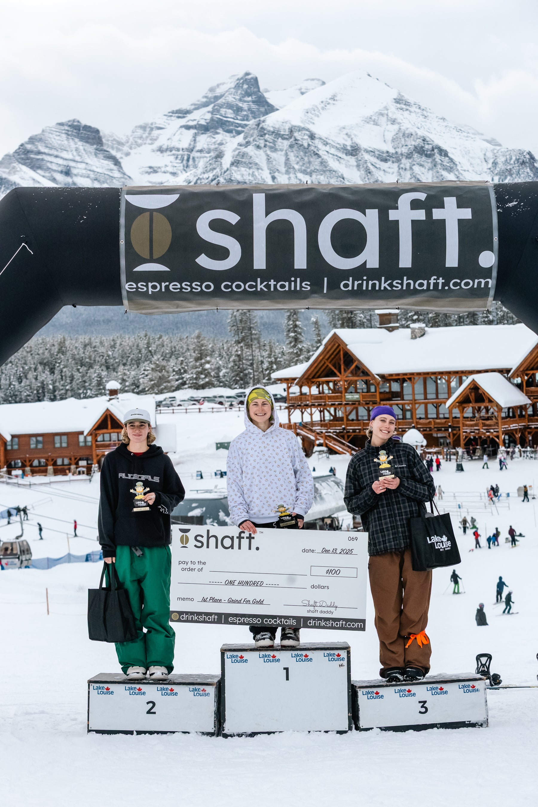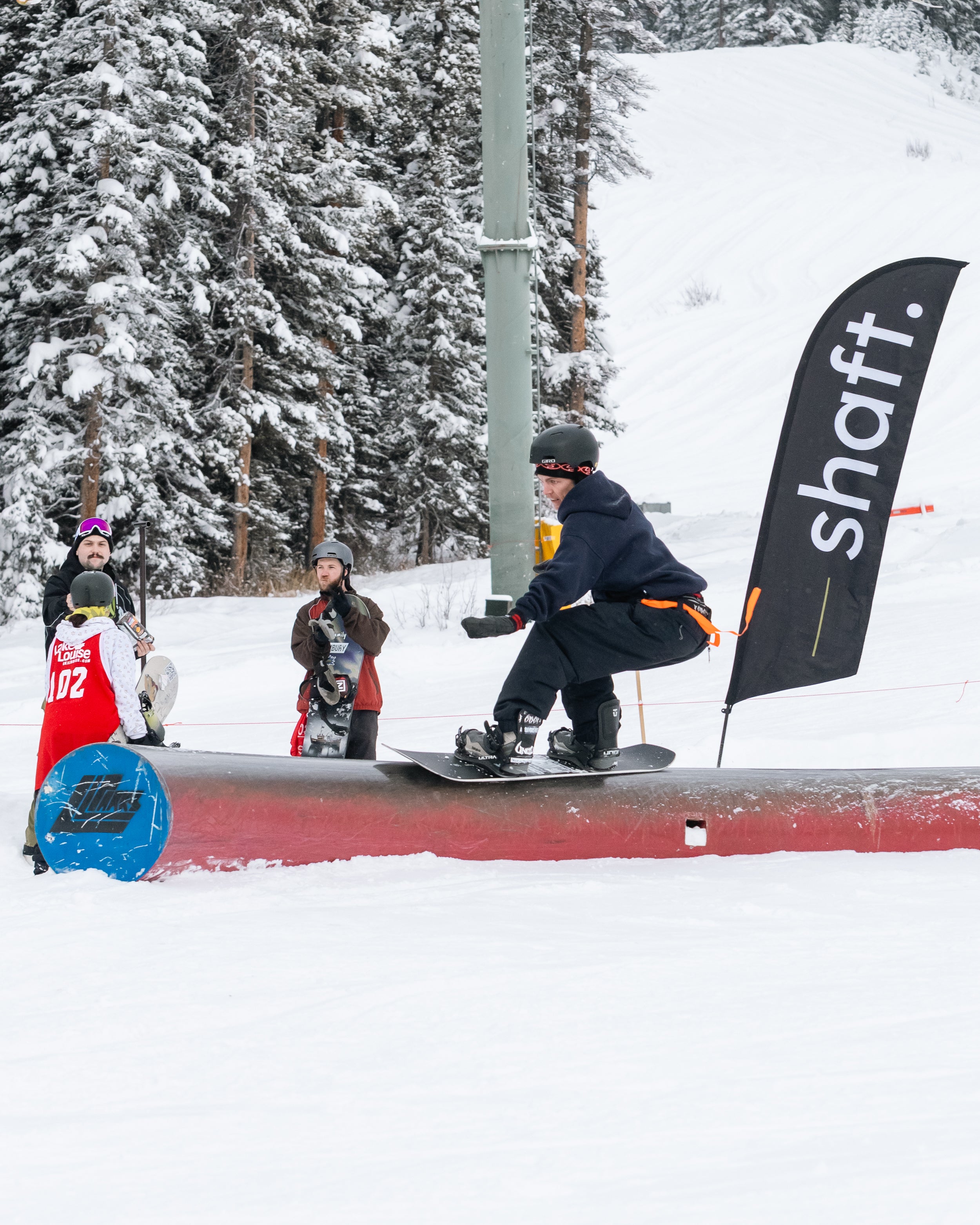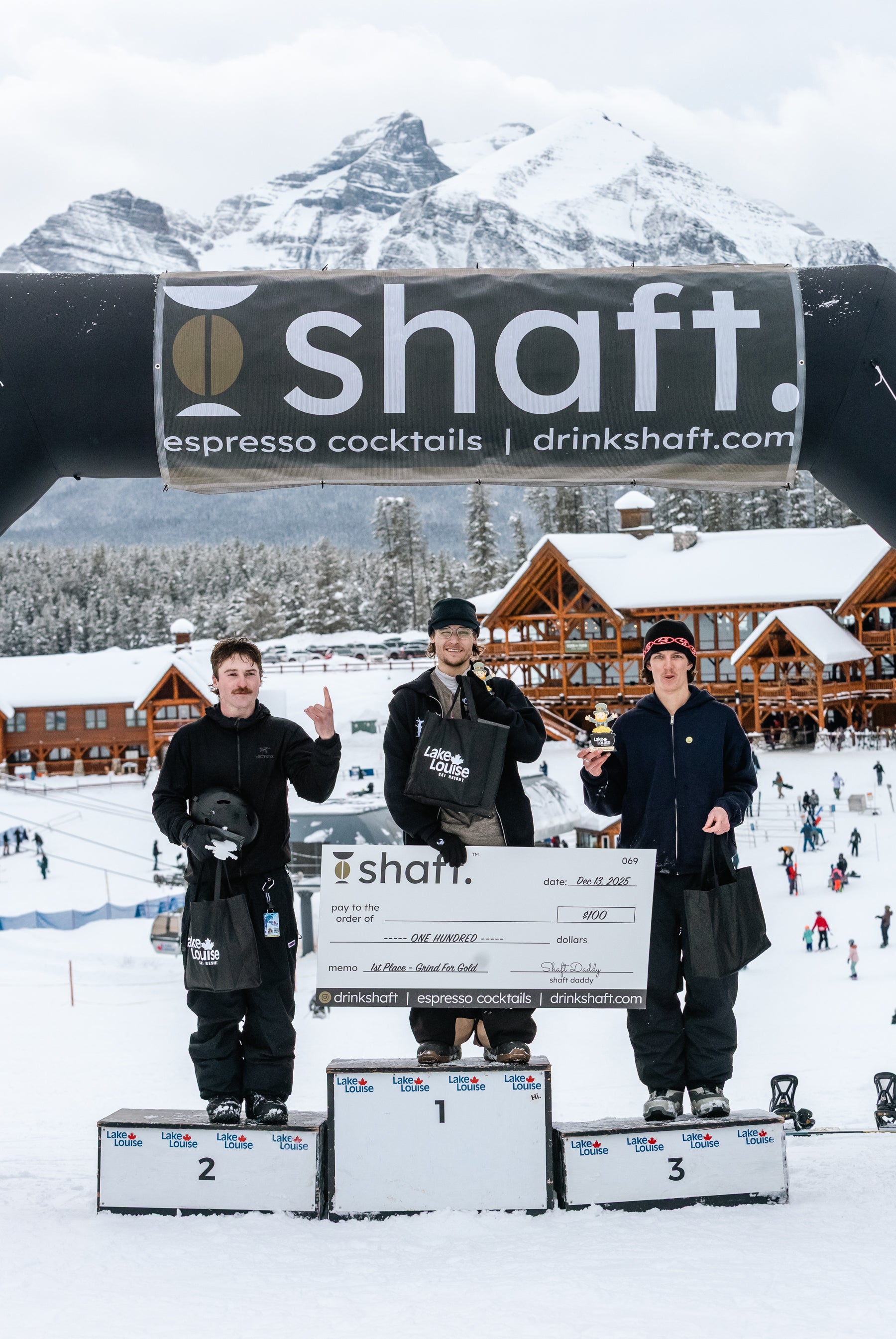 The Grind For Gold Rail Jam went off at Lake Louise Ski Resort today! Riders & skiers put on a show in a jam format contest with cash giveaways for tricks & larger prizes for podium finishers. Event partner, Shaft by Hendo was on course providing much needed caffeine fuel for competitors hiking up between each lap. The stoke was high with plenty of fist bumps, cheers and celebration between athletes. We love this community!