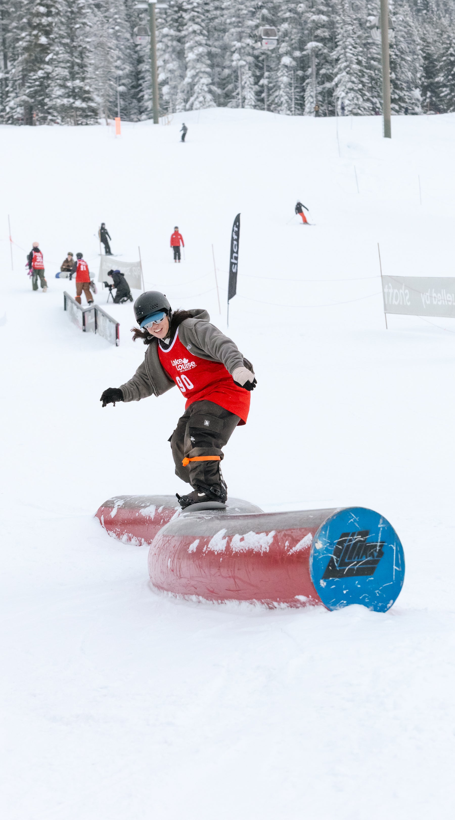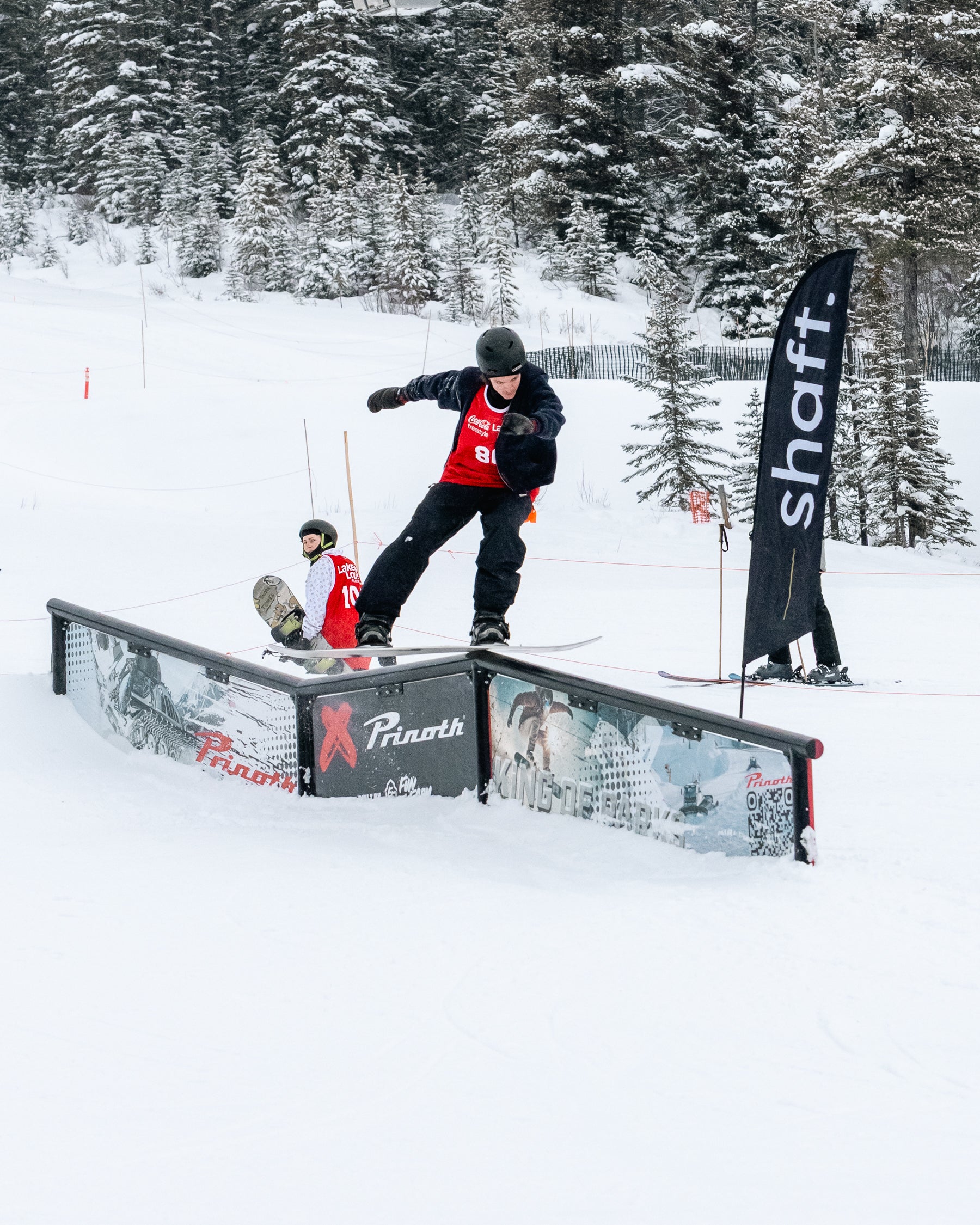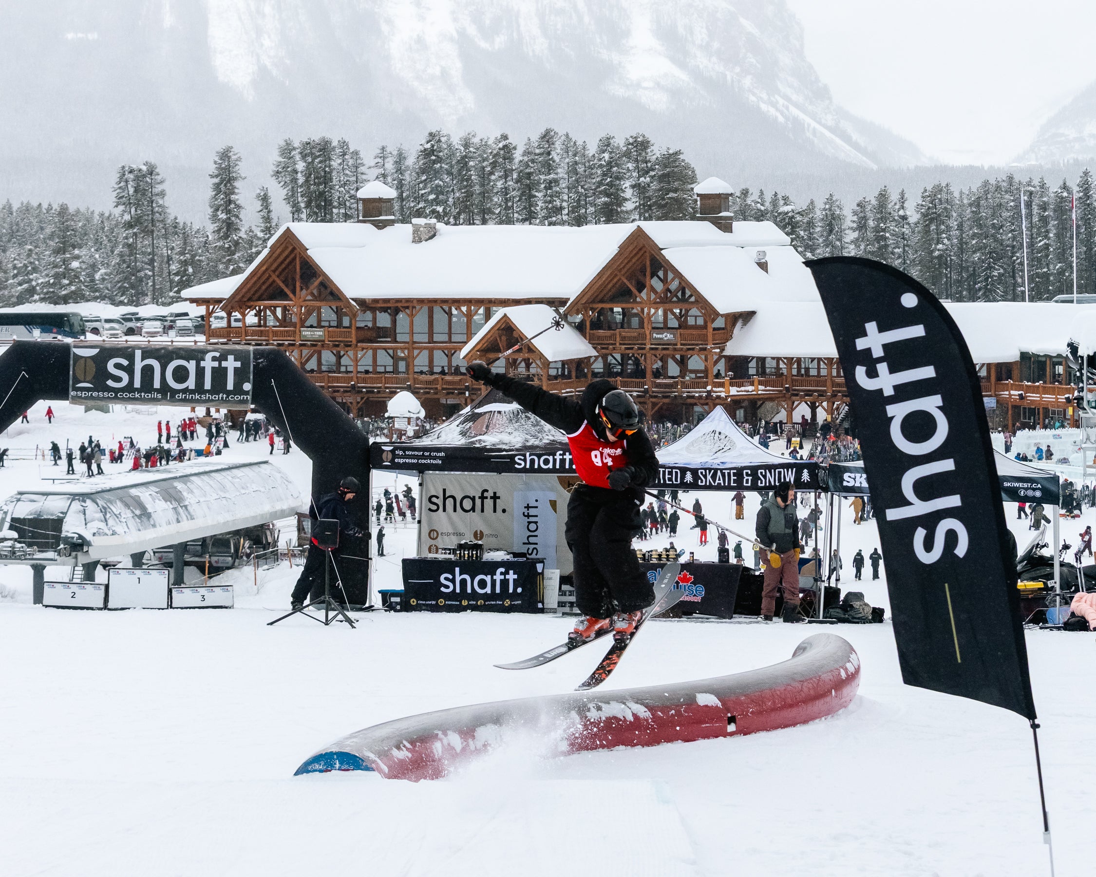 The Grind For Gold Rail Jam went off at Lake Louise Ski Resort today! Riders & skiers put on a show in a jam format contest with cash giveaways for tricks & larger prizes for podium finishers. Event partner, Shaft by Hendo was on course providing much needed caffeine fuel for competitors hiking up between each lap. The stoke was high with plenty of fist bumps, cheers and celebration between athletes. We love this community!