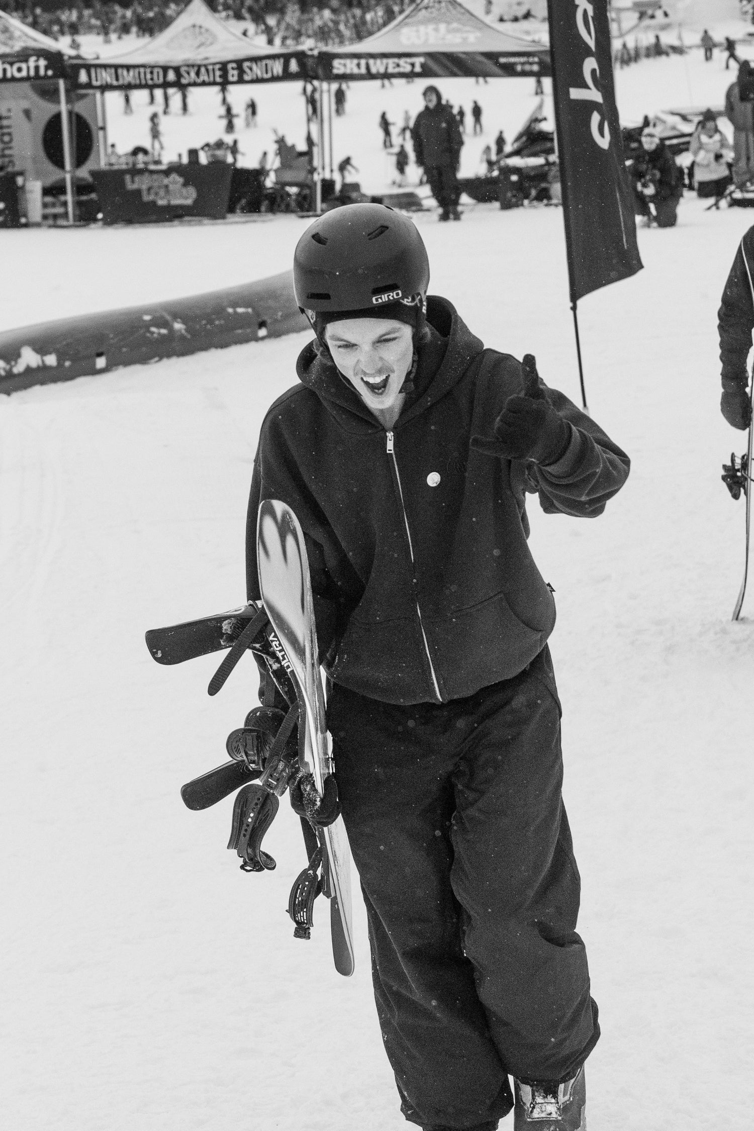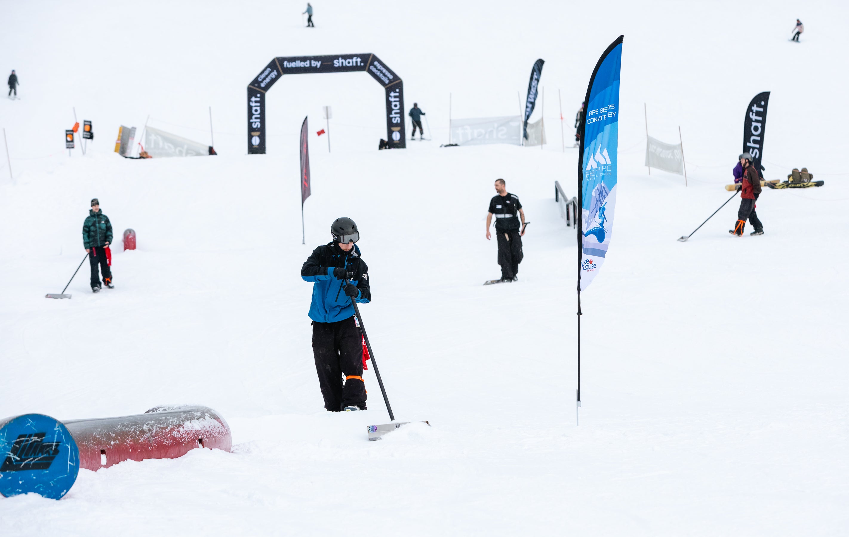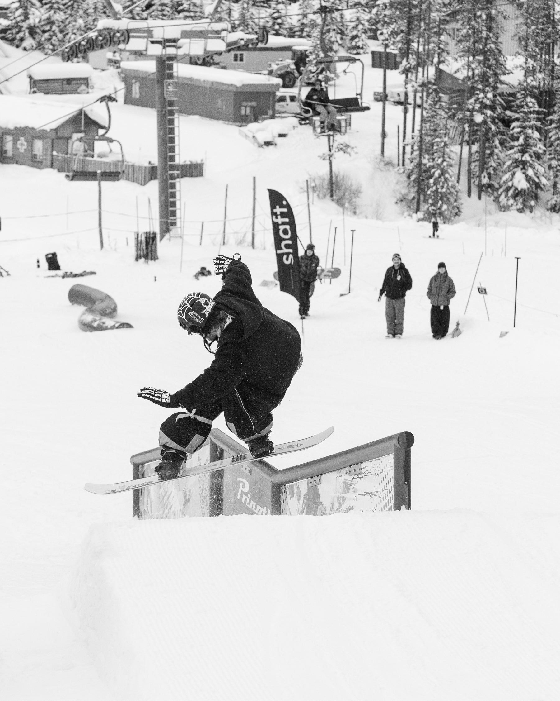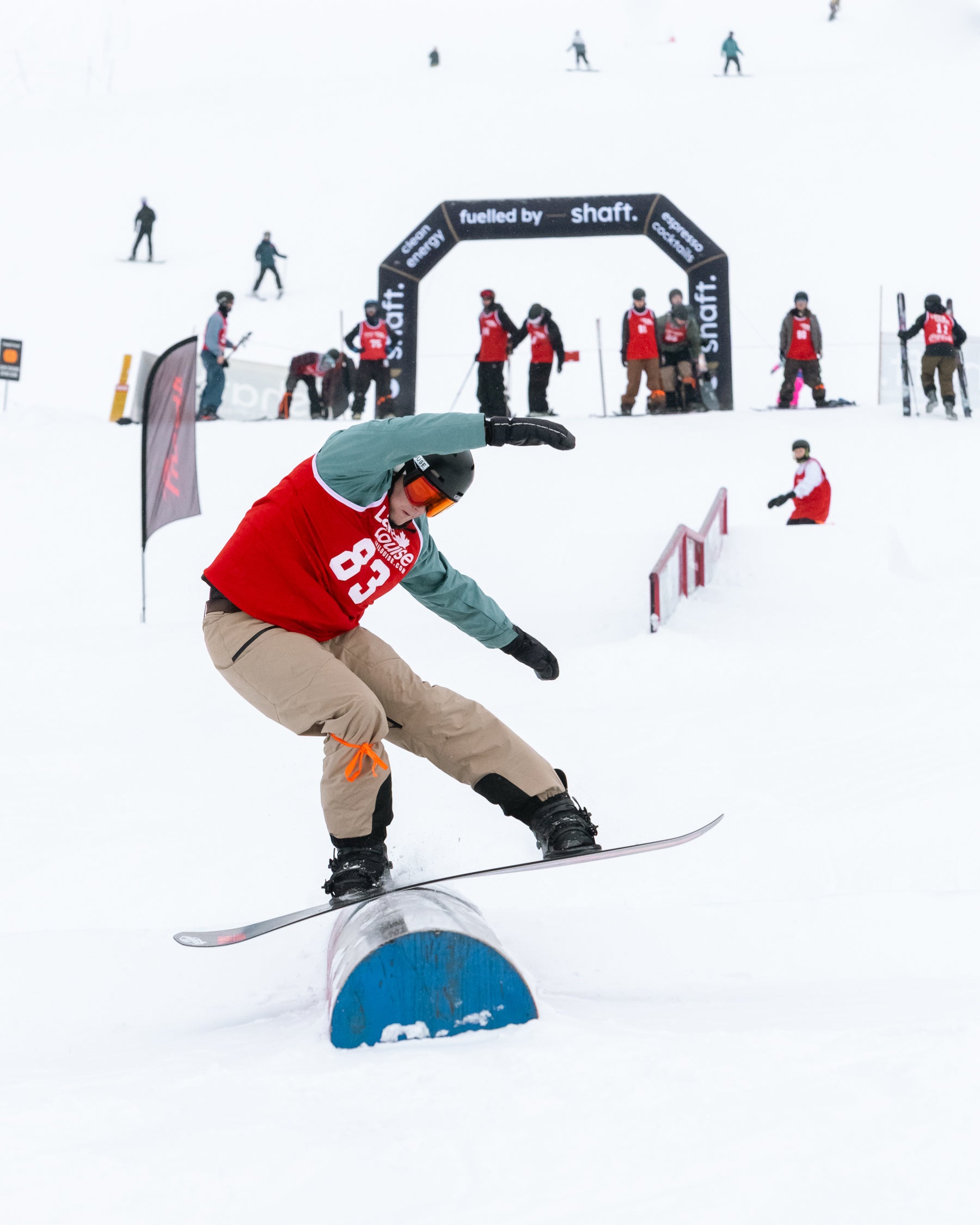 The Grind For Gold Rail Jam went off at Lake Louise Ski Resort today! Riders & skiers put on a show in a jam format contest with cash giveaways for tricks & larger prizes for podium finishers. Event partner, Shaft by Hendo was on course providing much needed caffeine fuel for competitors hiking up between each lap. The stoke was high with plenty of fist bumps, cheers and celebration between athletes. We love this community!