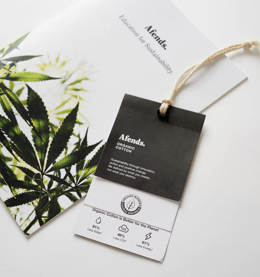 The selection of raw materials is vital when looking at sustainability in fashion. Every material has an impact on the environment, but the difference between them can be drastic. Ensuring that Afends makes educated and conscious decisions when selecting the appropriate fabrics for their garments is imperative in their journey to sustainability.